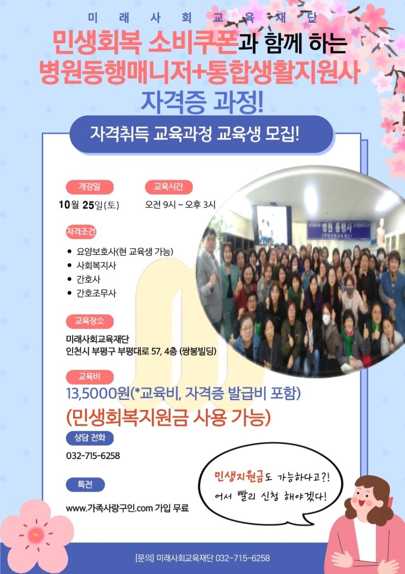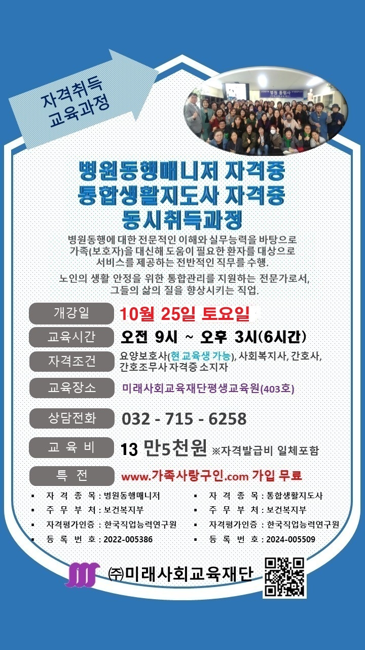 [10 월개강] 요즘 핫한 병원동행매니저 + 통합생활지원사 자격증 강좌!